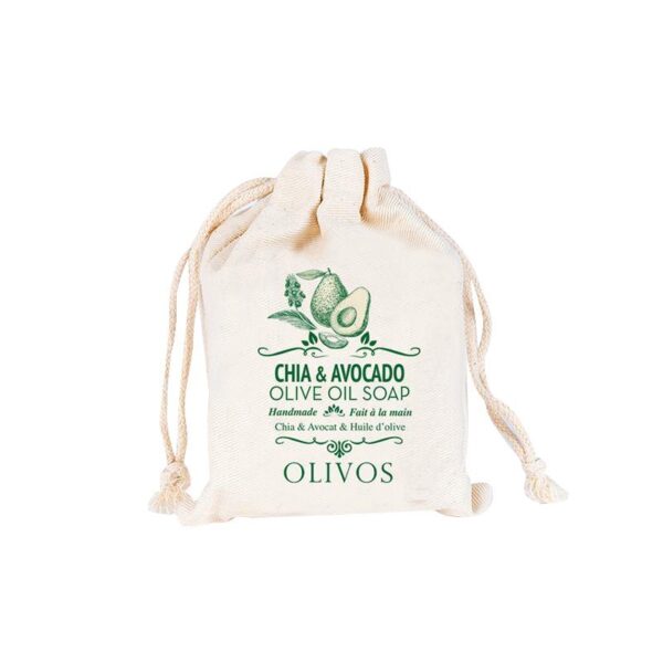 Superfoods for skin combined with 100% extra virgin olive oil and Chia & Avocado. Olivos Avocado & Chia Seed Soap helps to exfoliate and moisturize dry skin‚ giving it a more natural, refreshed and youthful glow. This is a great smelling‚ super food soap enhanced with antioxidant rich Avocado and skin empowering Chia. Special trilogy of extra virgin olive oil, Chia & Avocado obtain different effects on the skin. Extra virgin olive oil is very exfoliating and great for dead skin removal and impurities that settle on the skin. Avocado is known for its hydration and moisture properties, while chia seeds provide light exfoliation to the skin from the first use. Olivos Chia & avocado bar gently cleanses with a soft creamy lather that pampers and soothes the most delicate of skin types. Natural pouch packaging is bonus for travelling with your soap anytime.